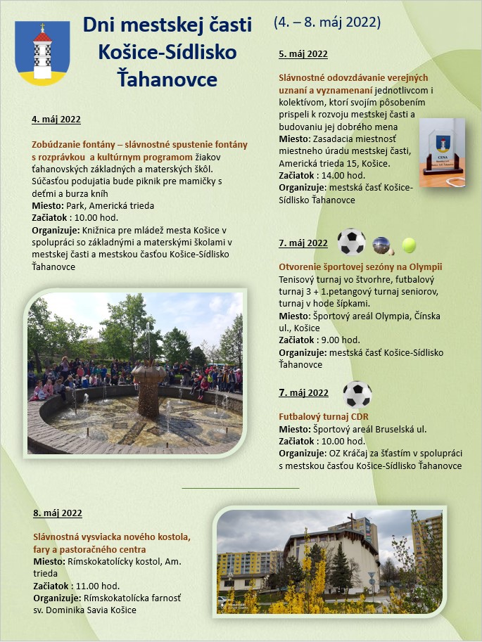 Dátum a Čas04. apr 2022 10:00 – 08. máj 2022 11:00MiestoKošice-Sídlisko Ťahanovce