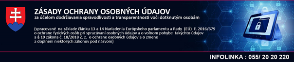 Kategórie príjemcov: MV SR – spracúvanie je nevyhnutné na splnenie zákonnej povinnosti prevádzkovateľa a to v zmysle zákona č. 253/1998 Z. z. o hlásení pobytu občanov SR a registri obyvateľov SR v znení neskorších predpisov, subjekty, ktorým osobitný predpis zveruje právomoc rozhodovať o právach a povinnostiach fyzických osôb: súdy, orgány činné v trestnom konaní, exekútor – spracúvanie je nevyhnutné na splnenie zákonnej povinnosti prevádzkovateľa a to v zmysle zákona č. 233/2015 Z. z. o súdnych exekútoroch a exekučnej činnosti (Exekučný poriadok) a o zmene a doplnení niektorých zákonov v znení neskorších predpisov, oprávnený orgán štátu – spracúvanie je nevyhnutné na splnenie zákonnej povinnosti prevádzkovateľa a to v zmysle všeobecného nariadenia o ochrane údajov, Okresný úrad – spracúvanie je nevyhnutné na splnenie zákonnej povinnosti prevádzkovateľa a to v zmysle zákona č. 570/2005 Z. z. o brannej povinnosti a o zmene a doplnení niektorých zákonov v znení neskorších predpisov